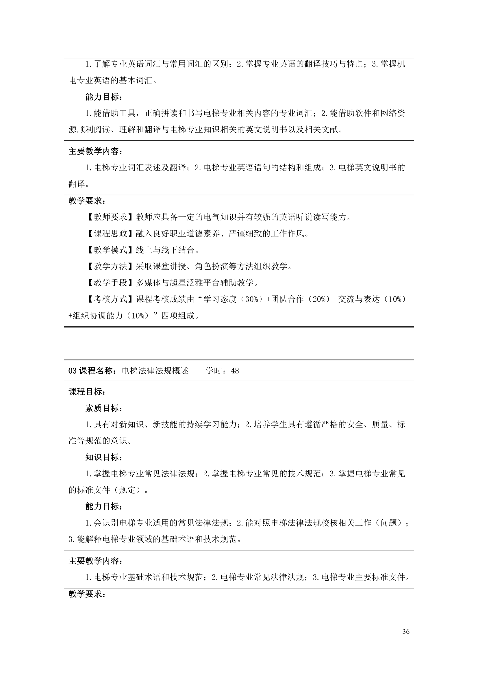 2021级电梯工程技术专业人才培养方案