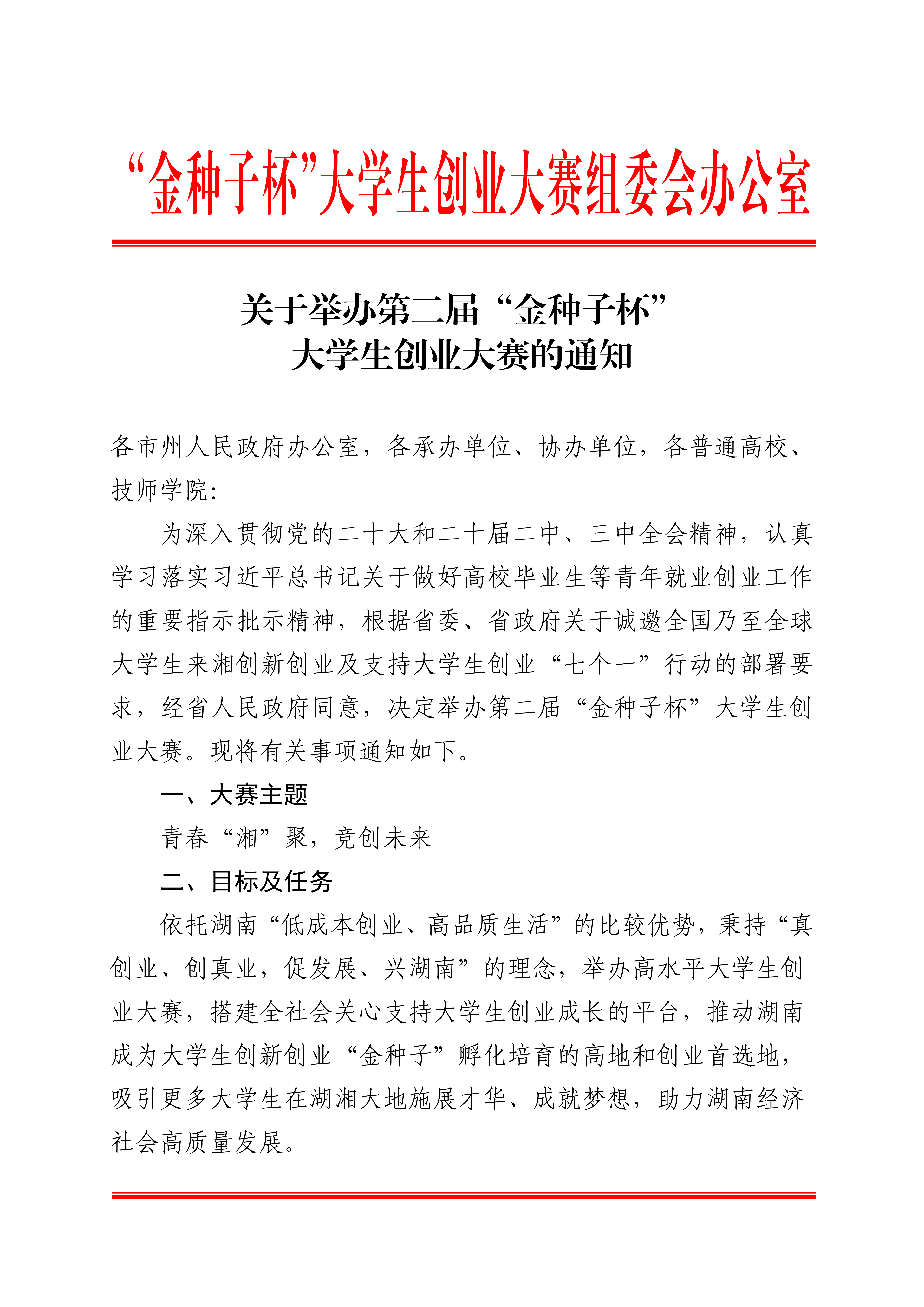 关于举办第二届“金种子杯” 大学生创业大赛的通知