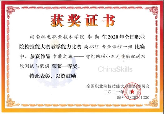 2.2022年“楚怡杯”湖南省职业院校教师职业能力竞赛教学能力比赛(高等职业专业课程一组)一等奖