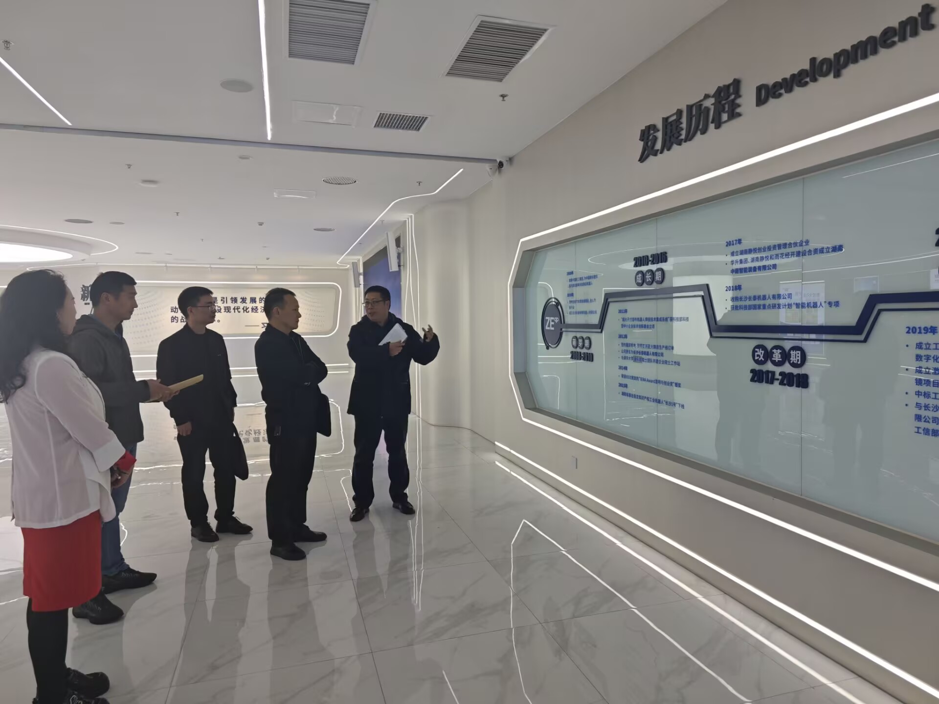在中南智能梁宪峰等负责人陪同下,郭凤鸣副校长一行参观了企业展览馆,详细了解企业发展历程、核心技术、智能制造产业布局及典型应用场景。郭校长对企业在智能装备、系统集成等领域的技术优势与行业影响力给予高度评价。