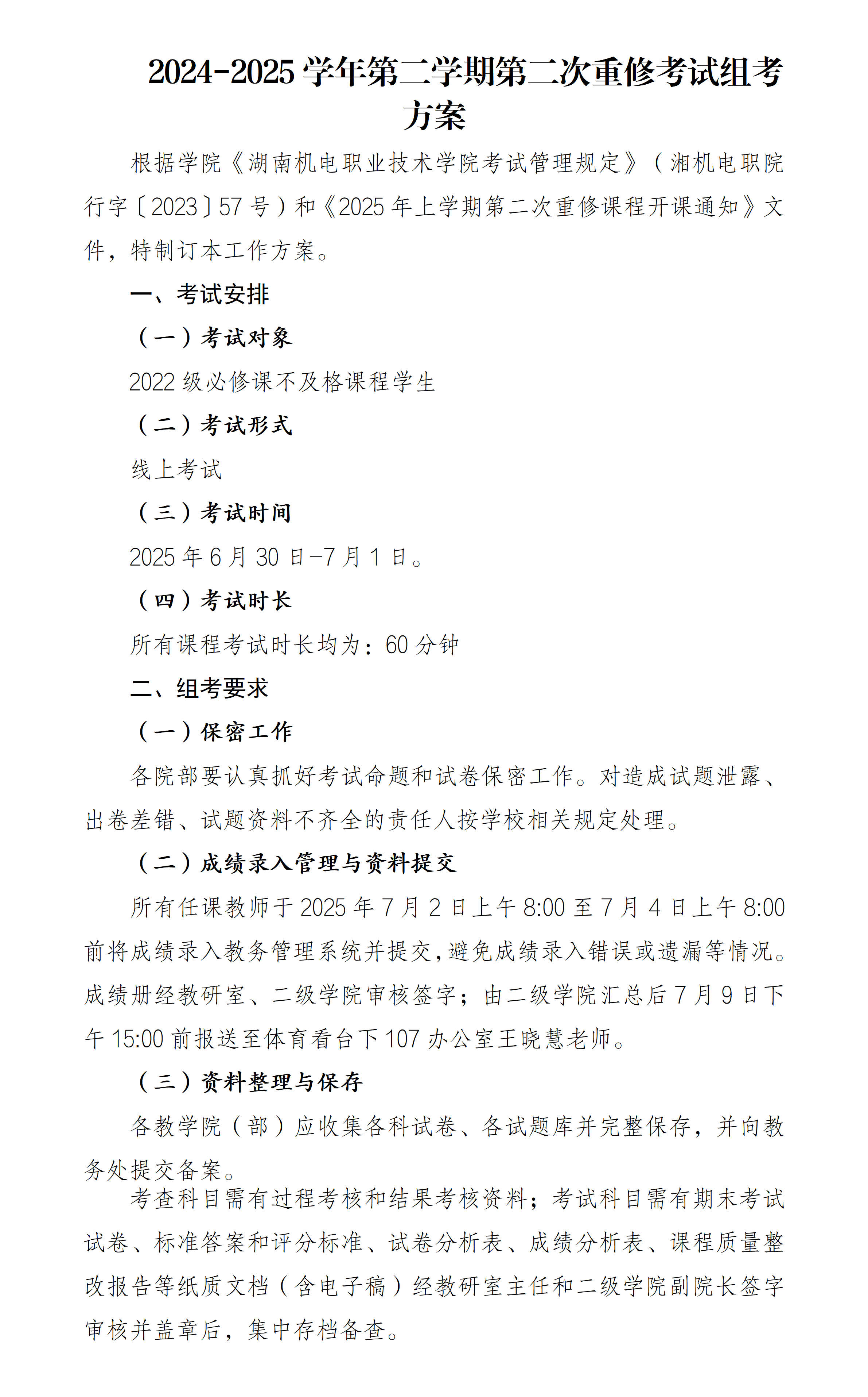 关于做好2024-2025学年第二学期第二次重修考试通知