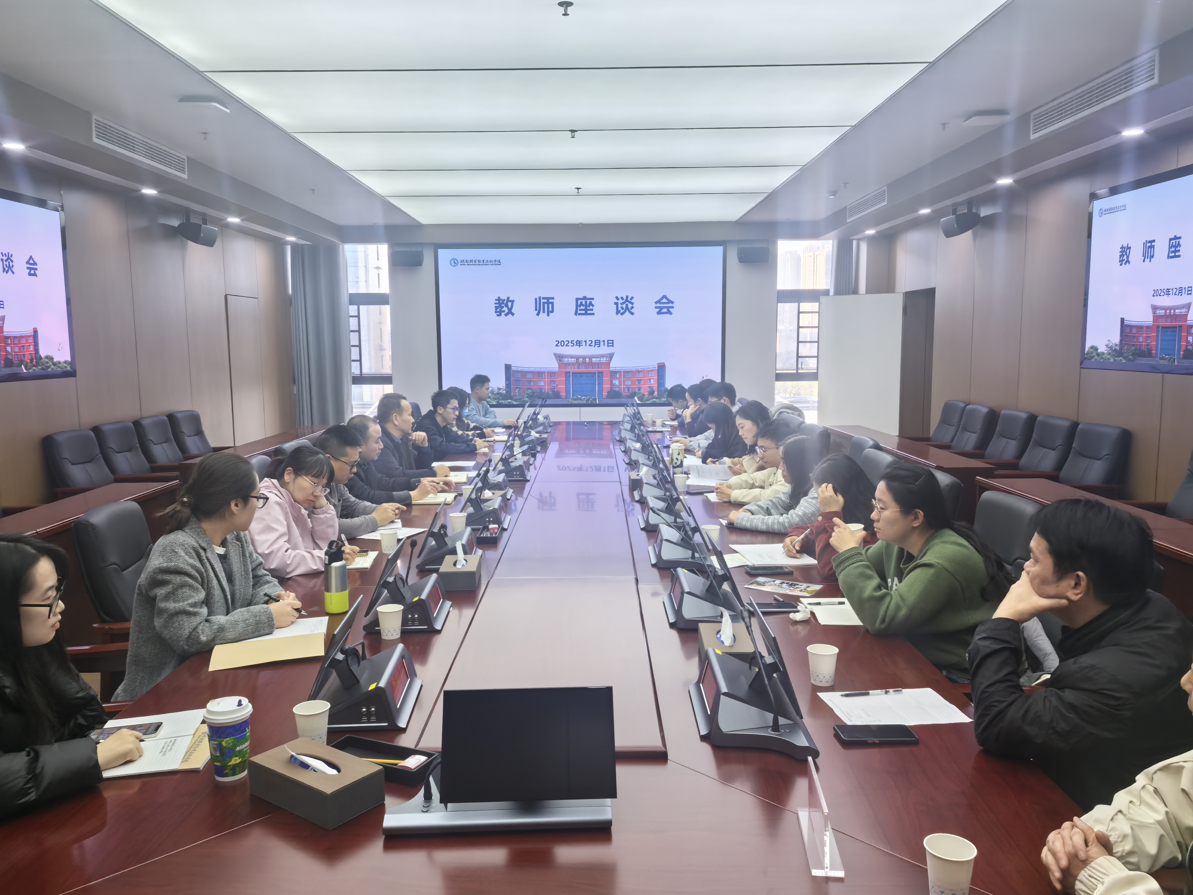教师座谈会上,教师代表们围绕教学管理、教师发展、考核机制、资源保障等核心议题积极发言。郭凤鸣副校长认真倾听并回应了教师们的诉求,表示学校将强化“老带新”传帮带机制,优化校级培训体系,增设课程建设、教研教改专项指导;优化教师教学评价体系,兼顾管理公平与教学实际。