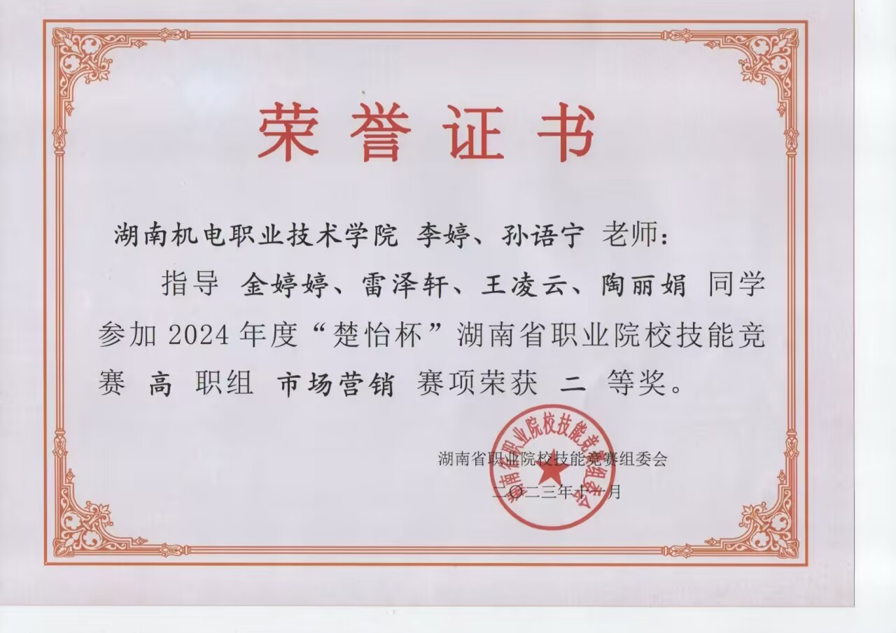 学生在全国营销技能大赛中多次取得优异成绩,2014 年、2018 年在湖南省高职市场营销专业学生技能抽考中均获评 “优秀” 等级。
