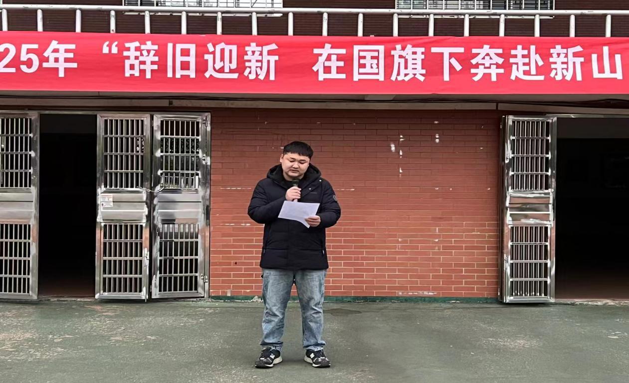随后,学院专职辅导员段继涯老师发表讲话,他与同学们共同回望2025年成长足迹,向全体同学送上殷切寄语:“旧岁的汗水皆为勋章,新年的征程已然开启。希望同学们以国旗为精神坐标,立技能成才之志,在日常学习中夯实学识根基,在实践历练中增长过硬才干。” 同时,段老师也温情承诺,老师们将始终与同学们携手同行、共赴新程。