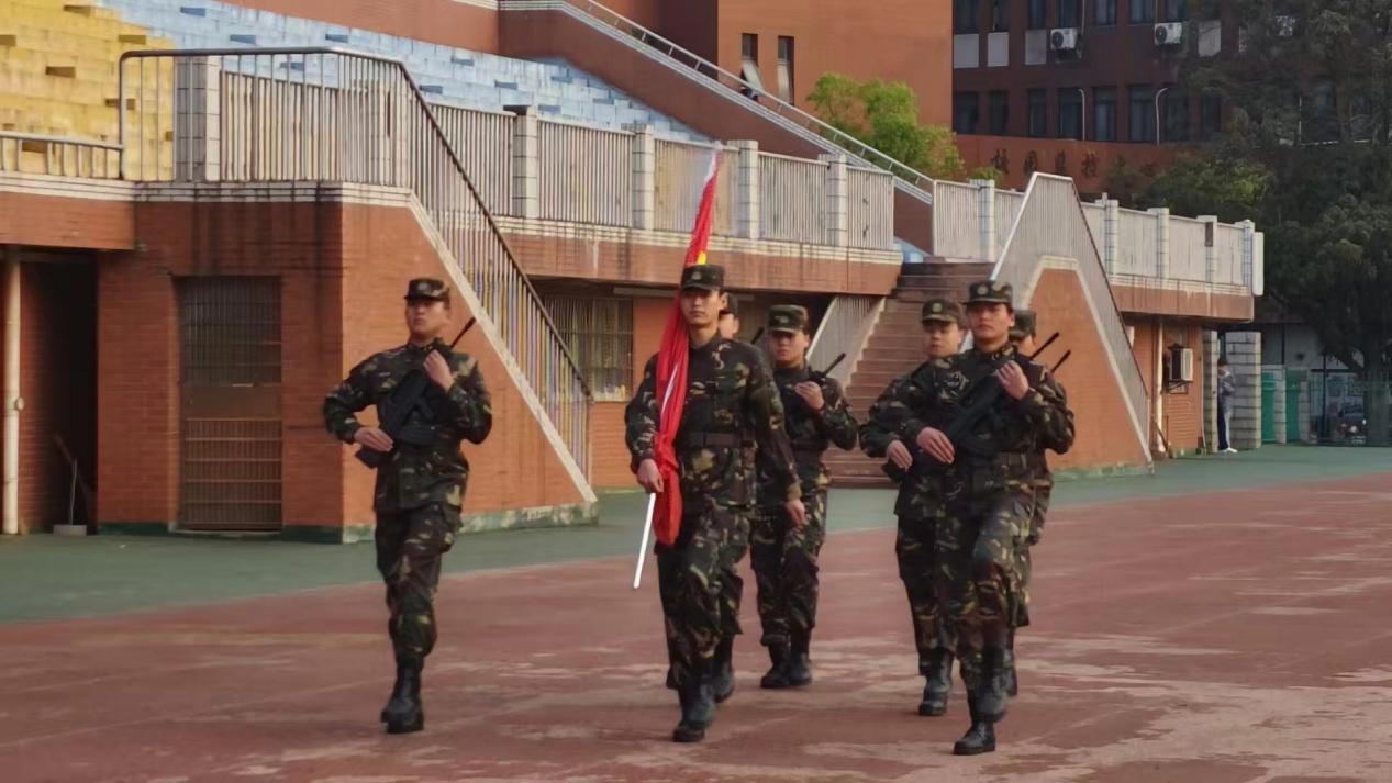 伴随着雄壮激昂的《义勇军进行曲》,五星红旗冉冉升起,迎风飘扬。全体师生肃立注目,齐唱国歌,胸中激荡着滚烫的爱国情怀与昂扬的奋斗豪情。