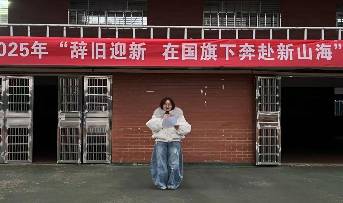 产艺2401班张钰婧同学作为学生代表发表国旗下的讲话。她回顾了2025年在学业深耕、实践锤炼、志愿服务中的成长与收获,紧扣 “新山海” 主题深情寄语:辞旧迎新不止是岁月更迭,更是初心的坚守与步履的不停。同时,她向全体同学发出号召,愿大家以朝气蓬勃的姿态、脚踏实地的行动,勇往直前奔赴属于自己的青春新征程。