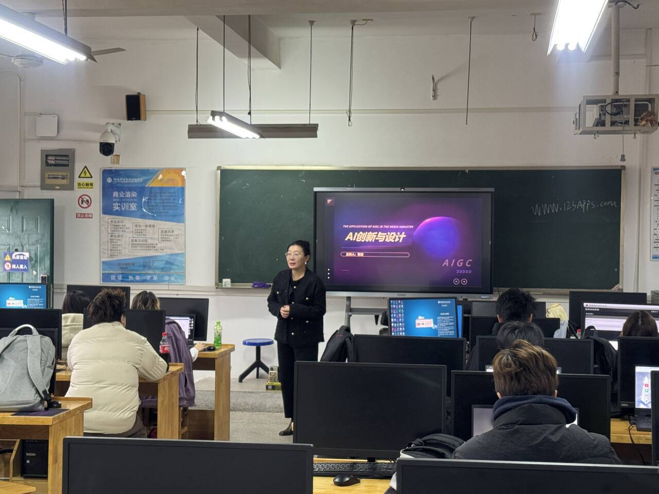 11 月 12 日,数字媒体专业张洁老师以《AI 创新与设计》“AI 视频制作工作流” 为内容开课。课程聚焦 AI 技术在视频创作中的应用,系统讲解 AI 视频制作全流程 —— 从素材获取、智能剪辑、特效生成到最终输出,结合实操案例展示 AI 工具在提升制作效率、优化视觉效果上的优势,帮助学生快速掌握 AI 与设计创作的融合方法。