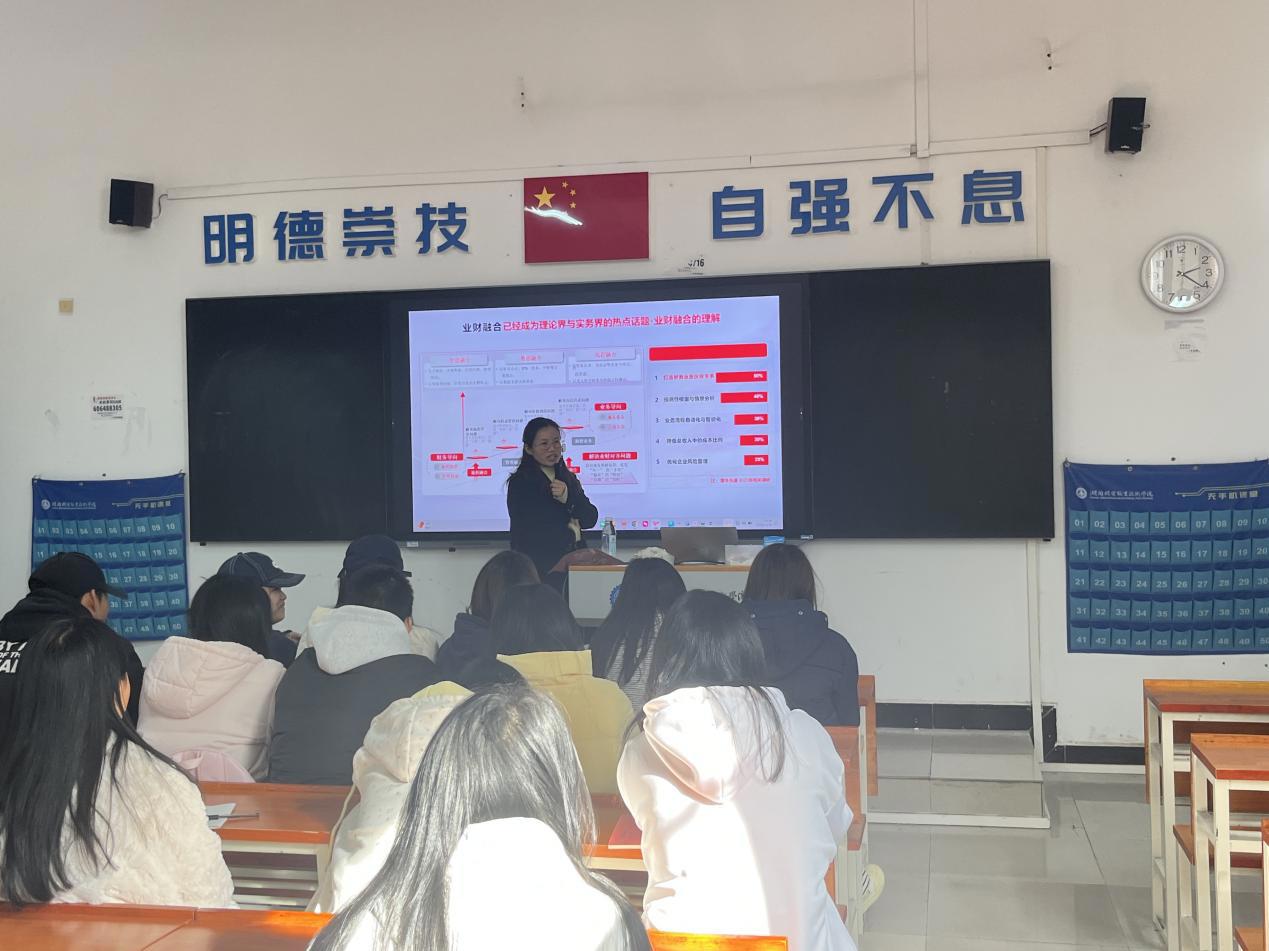 2025年11月19日下午,湖南机电职业技术学院现代服务学院财经教研室特邀企业导师郑夕容、尹艳娥,分别为大数据与会计专业85名、业财数据应用与管理专业87名大一学生,开展了专业介绍与职业规划专题讲座。两位导师结合行业实践与个人经验,为新生们搭建起从理论到职场的桥梁,助力他们明确专业方向、规划成长路径。
