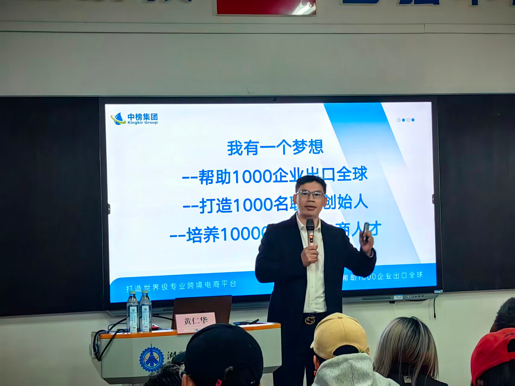 11 月 19 日下午,现代服务学院举办了一场主题为 "我有一个梦想" 的励志讲座,特邀中榜集团创始人、长沙市跨境贸易协会创始会长黄仁华经理担任主讲嘉宾。