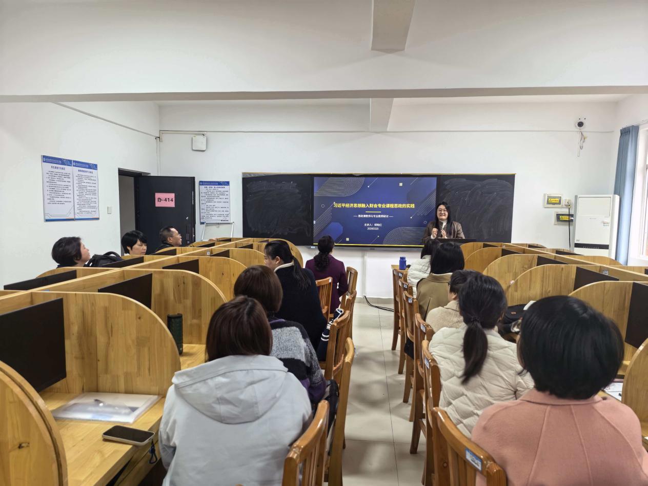 3月25日,现代服务业学院财经教研室与马克思主义学院思想道德与法治教研室联合开展专题学习,深入贯彻湖南省教育厅转发的《教育部办公厅关于推进习近平经济思想有机融入专业教育的通知》精神。