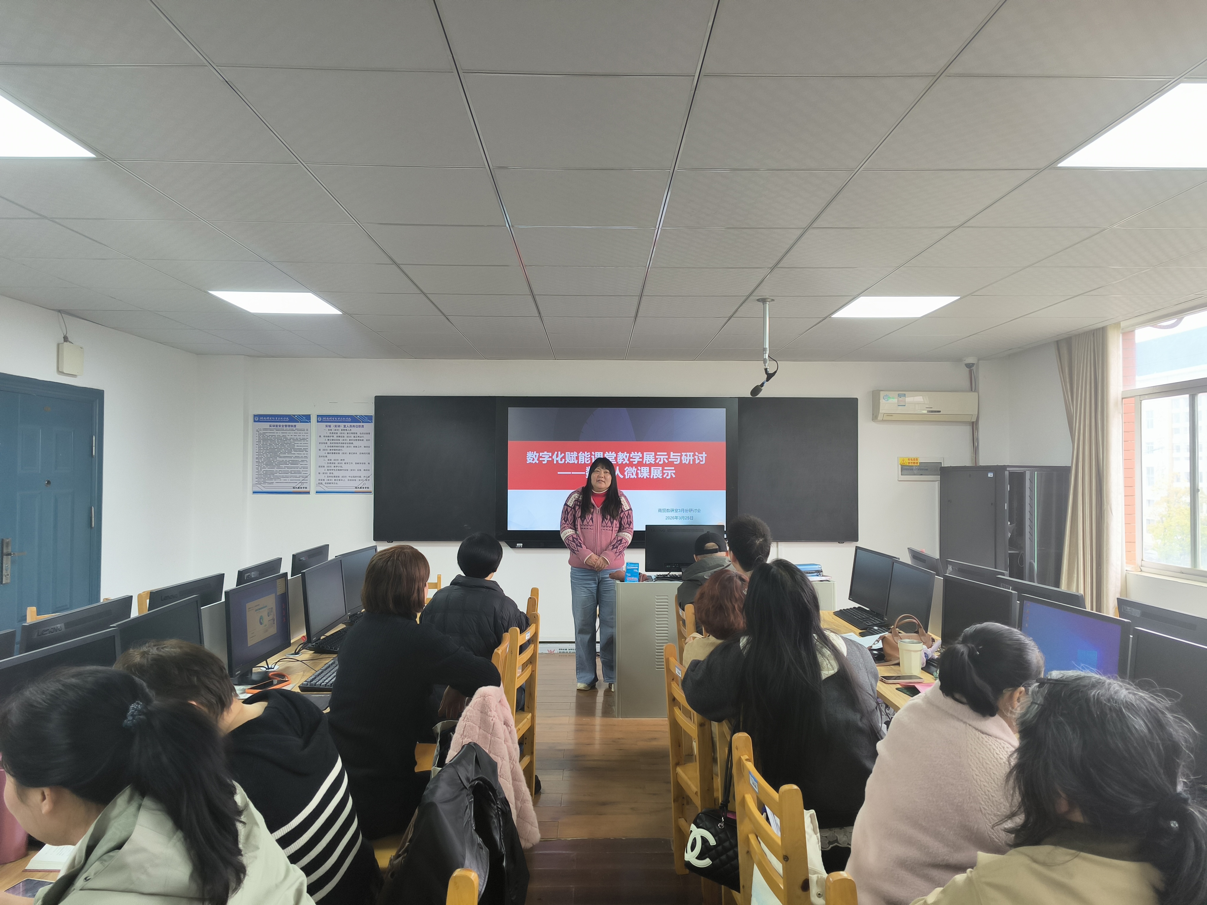 为深入推进教育数字化转型,探索数字技术与课堂教学的深度融合,2026年3月25日,湖南机电职业技术学院现代服务学院商贸教研室开展以“数字化赋能课堂教学展示与研讨——数字人微课展示”为主题的教研活动。本次活动由黄亚宇教授主讲,教研室全体教师参与研讨,共同探索数字人技术在专业教学中的创新应用路径。
