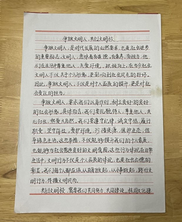 近日,机械工程学院开展了“倡树文明新风,共建和谐校园”主题征文活动。本次活动由各在校班级推选代表参加。