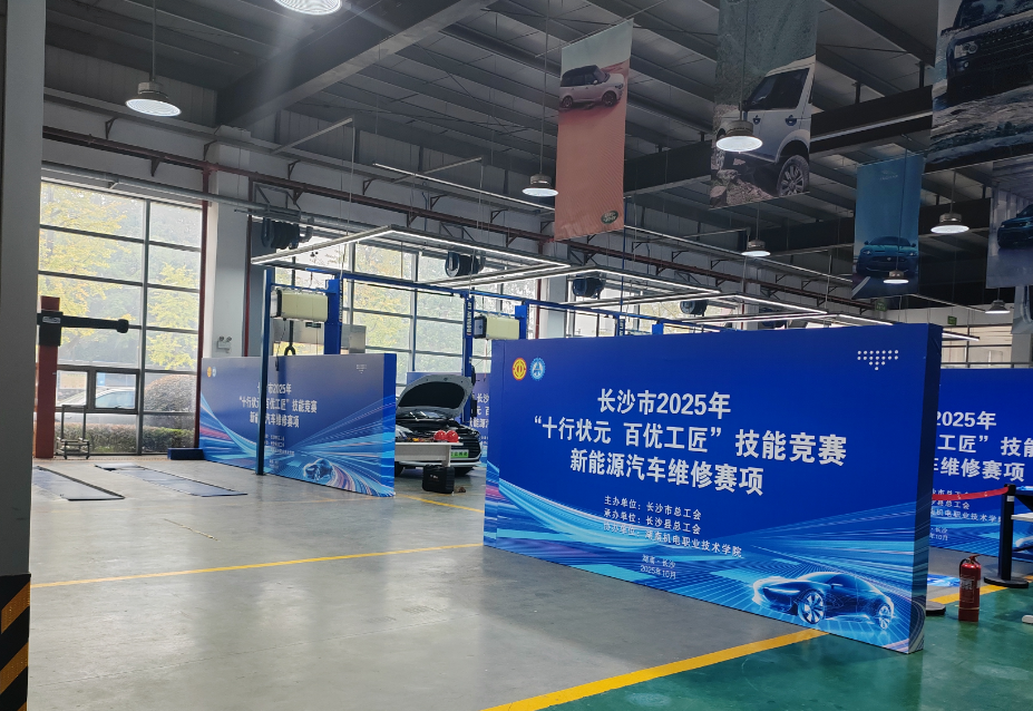 10月30日,由长沙市总工会主办、长沙县总工会承办、我校协办的长沙市2025年“十行状元 百优工匠”技能竞赛之新能源汽车维修赛项在我校举办。本次大赛吸引了来自全市9个区县的31支代表队、62名企业在职职工同台竞技,本次竞赛是响应国家智能化、绿色化产业方向,服务长沙新能源汽车产业发展需求的关键举措,是推动传统维修技工向“智能技师”转型升级的生动实践。对于正在校接受新能源汽车职业技能培训的退役士兵学员而言,这场赛事不仅是一场精彩纷呈的技能盛宴,更是一次淬炼专业本领、明晰职业方向的实战课堂。我校精准锚定赛事的育人价值,精心组织退役士兵学员全程深度参与竞赛服务保障工作,让他们在实践服务中锤炼技能,在现场观摩中体悟匠心。