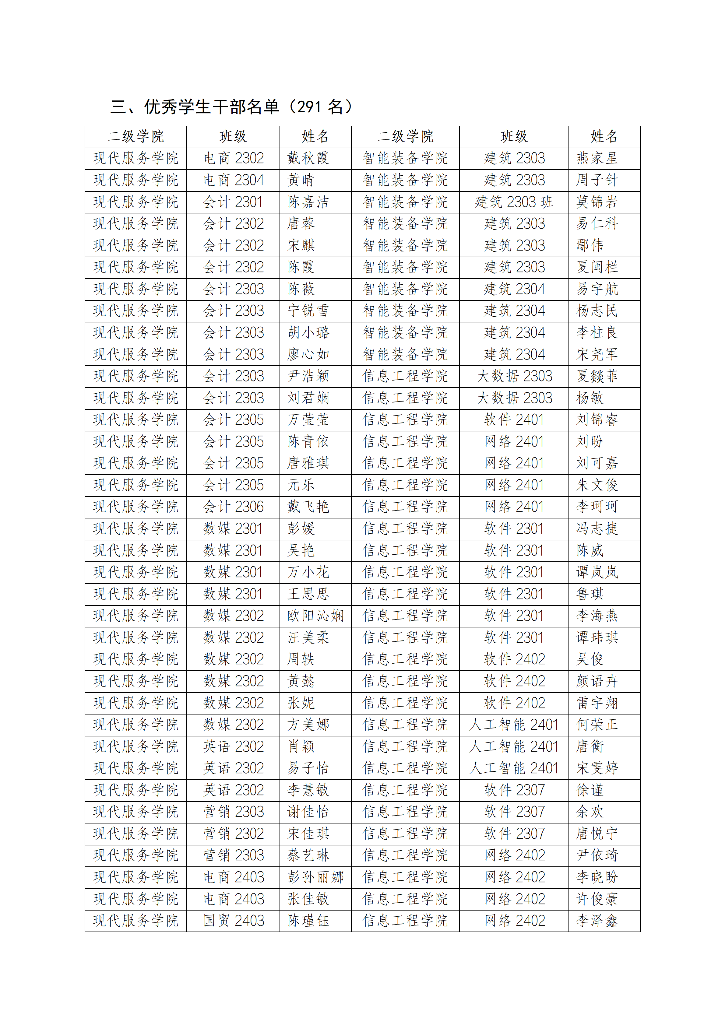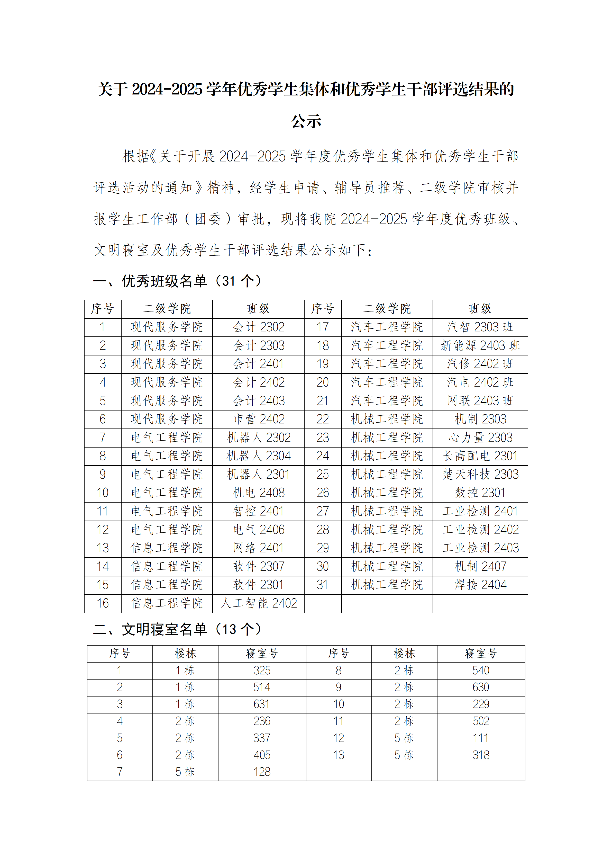 关于2024-2025学年优秀学生集体和优秀学生干部评选结果的公示
