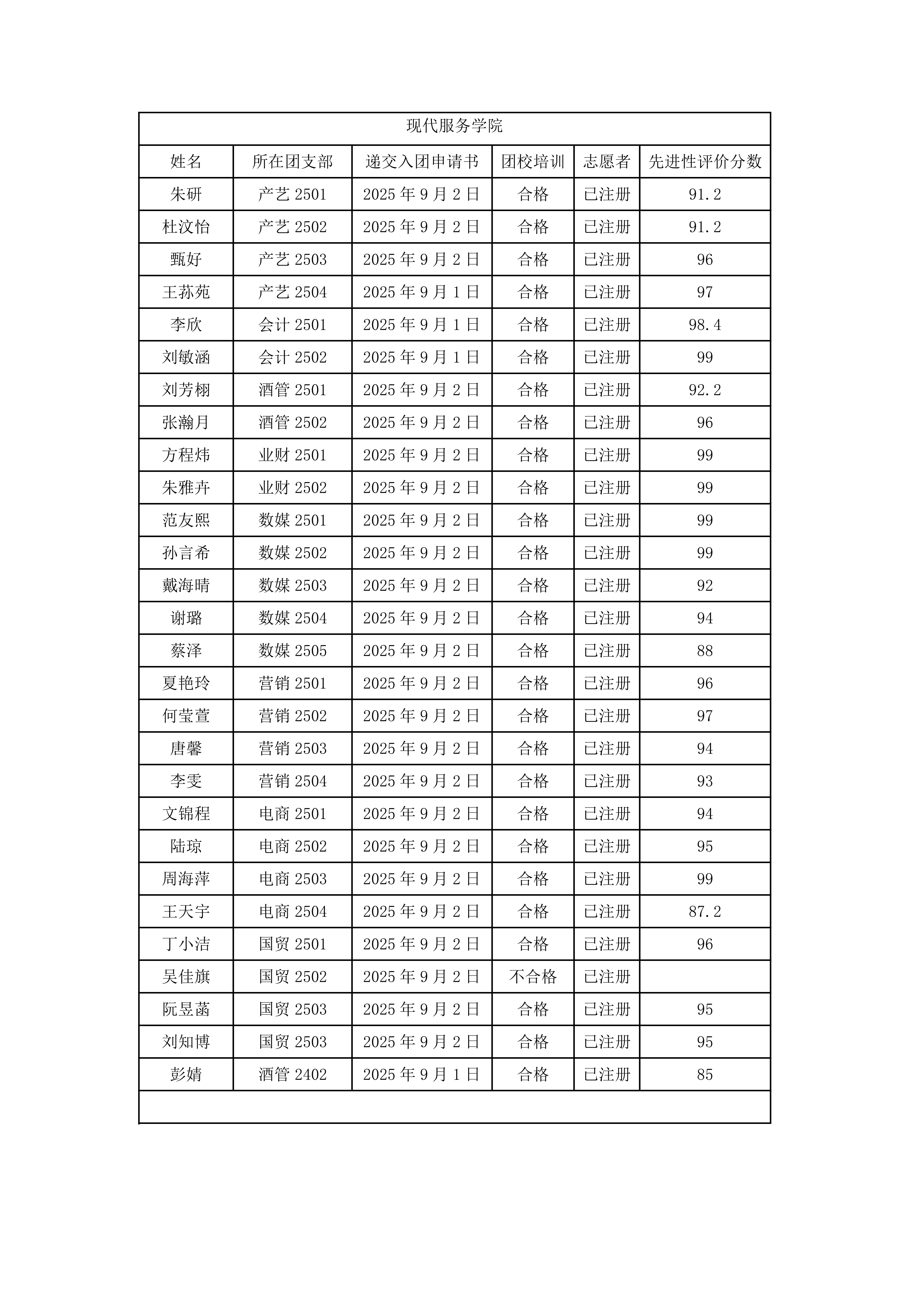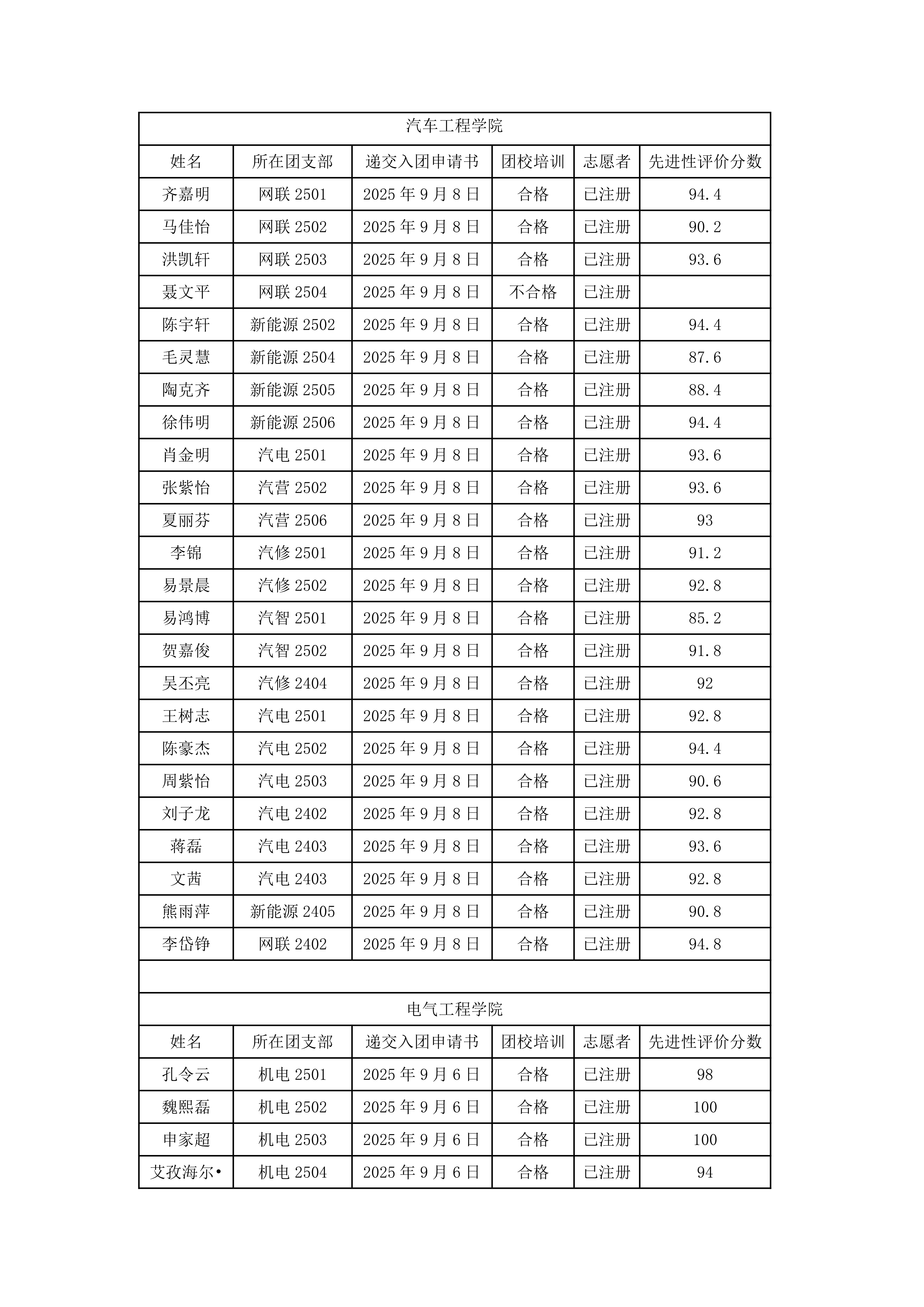 关于2025年下半年入团积极分子转为重点发展对象的名单公示
