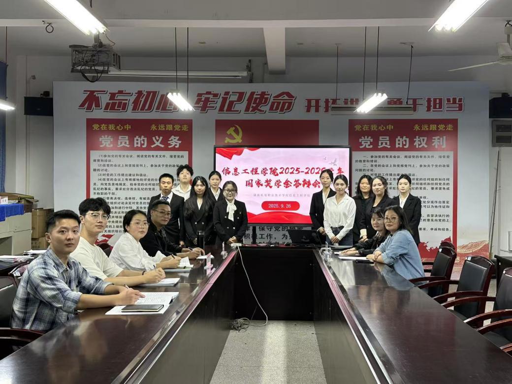 为充分发挥国家奖学金的育人树模功能,展现我院优秀学子的卓越风采,2025年9月26日下午,信息工程学院2024-2025学年国家奖学金答辩会在二教410教室举行。学院党总支副书记阮坚、辅导员康再兴、边敏、莫雨鑫、吴青、熊志成、吴安员出席了本次答辩会,见证了优秀学子们的精彩展示。