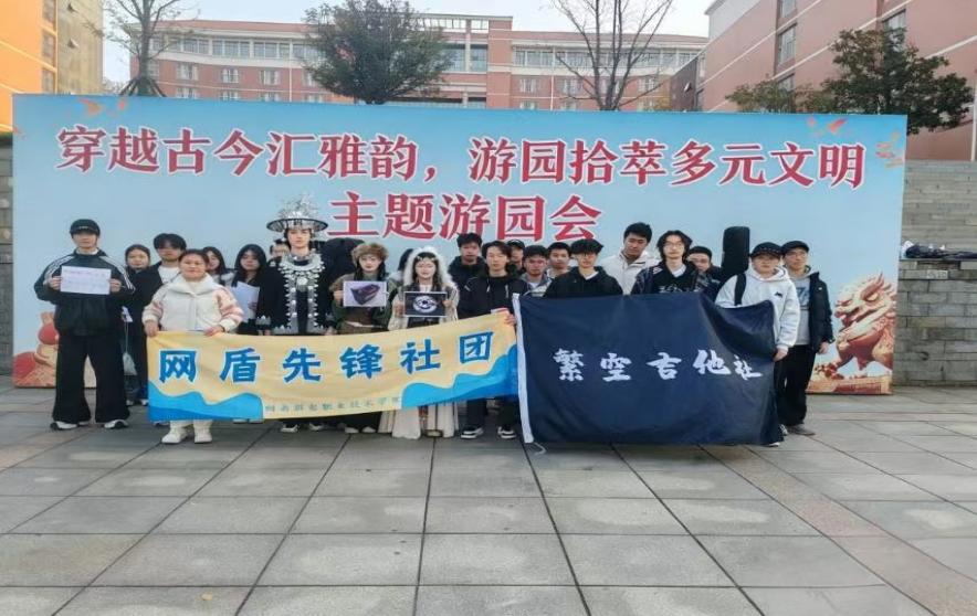 文化交融,古今辉映 游园会以“社团联动+多元体验”为主线,深度融合民族风情、传统文化与校园特色。少数民族文化专区中,苗族、壮族、彝族、藏族、哈尼族等服饰绚丽夺目,师生通过答题互动收集特色文旅印章,定格游园记忆。悠扬的马头琴表演萦绕广场,让人在韵律中领略民族艺术的深厚底蕴。