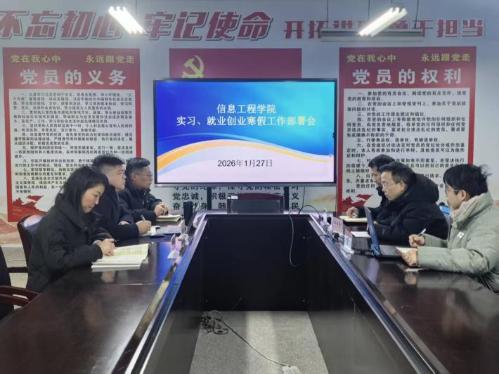 1月27日,信息工程学院召开实习、就业创业寒假工作部署会,学院党总支书记潘鑫主持会议,学院领导班子及实习就业干事参加会议。